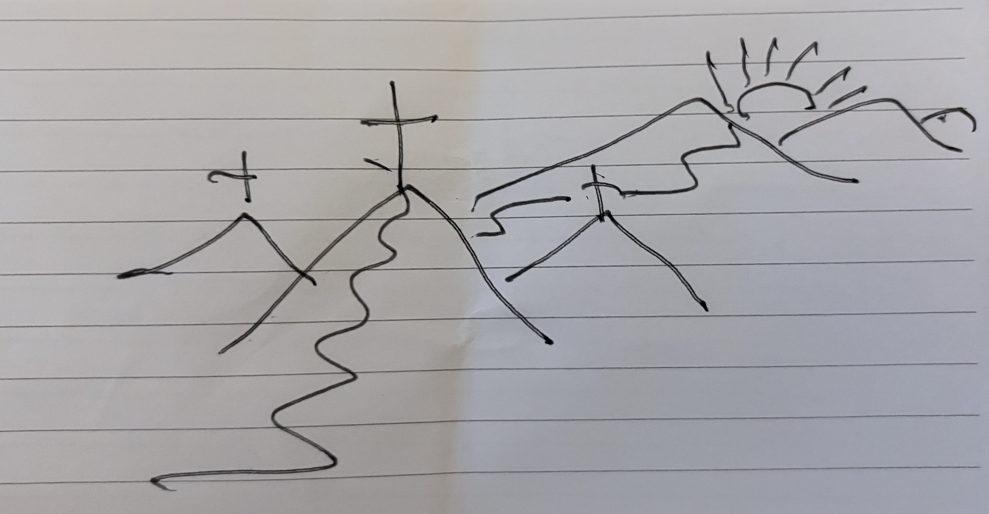 I shared how I was finding celebrating the Sacrament of Holy Communion more and more overwhelming. Allan drew this. What do I see? Well, more and more I see that the moment takes us to the foot of the cross, it should be overwhelming... what follows is a path leading to our freedom and salvation. Beautiful. Thank you Allan, this will be framed.